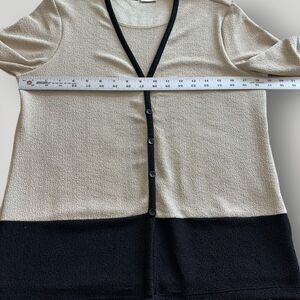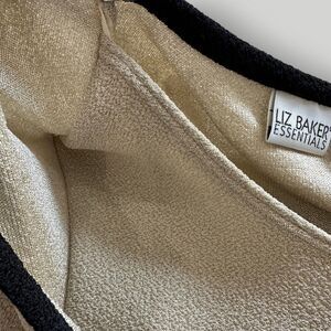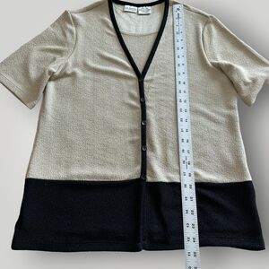 Liz Baker Essentials Women's S Black Tan Colorblock Two-fer Short Sleeve Blouse