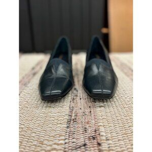 Liz Baker Ladies 8M Navy Blue Leather Heels With 1.75” Block Heel Square Toe Des
