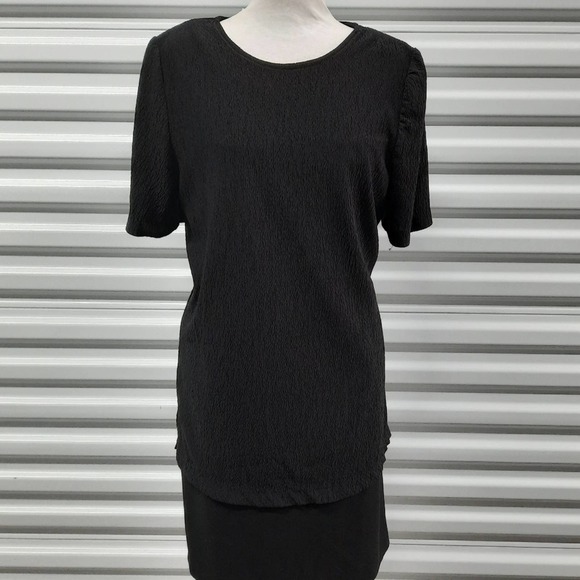 Liz Baker Women's Size Medium Black Short Sleeve Pullover Top Blouse.