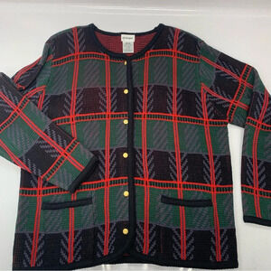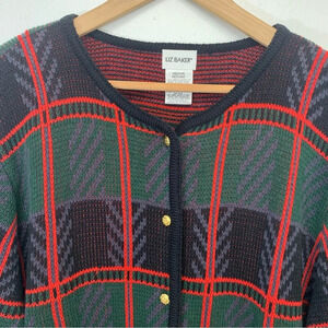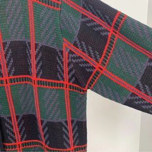Liz Baker Vintage Sweater Blazer Medum Green Black Plaid Button Up Pockets Boxy
