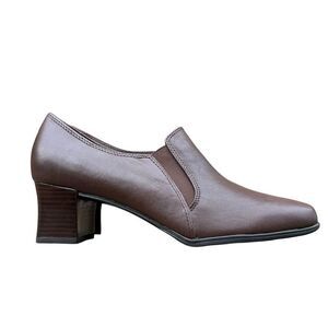 Liz Baker Women's Brown Leather Block Heel Slip On Shoes Size 8