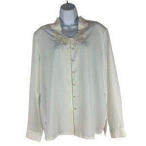 Liz Baker Women's V-Neck Button Down Shirt Size 12 White Long Sleeved