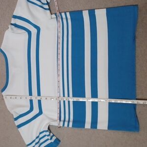 1X Liz Baker Woman striped top. short sleeve. 55% acrylic, 45% cotton. feels like a soft lightweight sweater. excellent pre-owned condition.