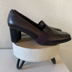 Liz Baker Dark Purple Leather Chunky Heels Size 6.5M EUC