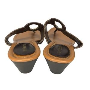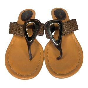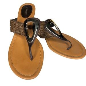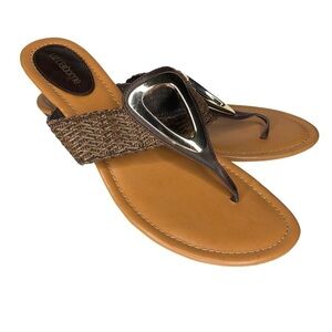 Liz CLAIBORNE Brown Woven Low Wedge Thong Sandals with Silver Accent - Size 9.5