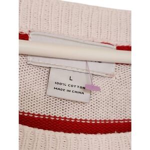 Liz Claiborne 100% Cotton Breathable Knit Striped Tie Sides Long Sleeve Pullover Sweater sz L Nautical Preppy Romantic