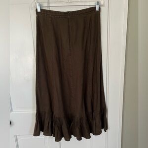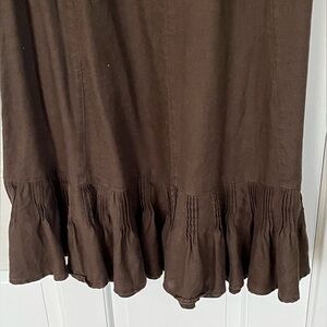 Liz Claiborne 100% Linen Maxi Skirt Women's Size 6 Ruffle Brown Prairie Boho