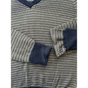 Liz Claiborne 100% Silk Sweater Navy/Gold Long Sleeve V-neck Women's Size Small