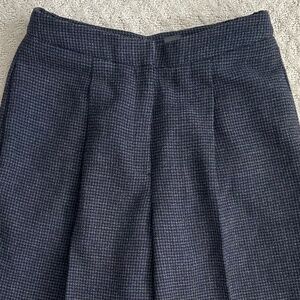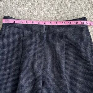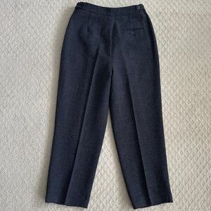 Liz Claiborne Collection 100% Wool Pleated Tweed Trousers/Pants - Size 10 - Dark Gray - Classic/Office/Workwear. Elevate your winter wardrobe with these classic Liz Claiborne 100% wool trousers, perfect for work or any casual occasion. Features front zip fly with interior button and hook/eye closure, pleated front, high waist, tapered leg, 100% wool tweed fabric, side pockets, one back pocket with button closure, and fully lined. Excellent pre-owned condition - the hook on the front is loose and just needs to be stitched back down (shown in last photo).