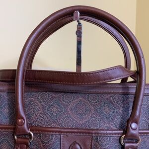 Liz Claiborne Dark Brown Paisley Medallions Print Zip Top Detachable Crossbody Strap Double Top Handle Bag Purse Satchel