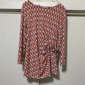 Liz Claiborne 3/4 length sleeve, peach, black & white design tunic, size XXL