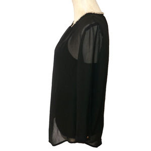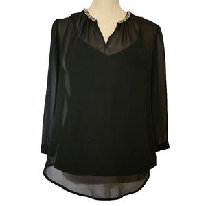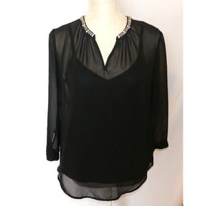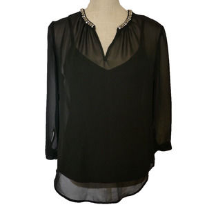 Liz Claiborne 3/4-Sleeve Embellished V- Neck Black Sheer Blouse and slip Size S
