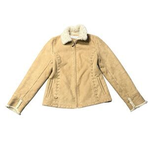 Liz Claiborne 90’s Faux Suede & Sherpa Lined Whipstitch Detail Jacket Size S