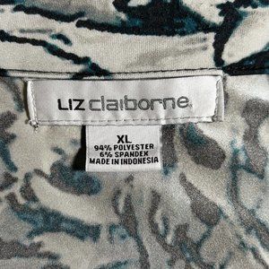 Liz Claiborne 90s Retro Faux Wrap Top XL, Side Ruching, Collar, 3/4 Sleeves EUC