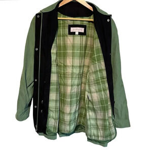 Liz Claiborne All Weather Utility Coat Green Plaid Removable Liner Preppy Sz M