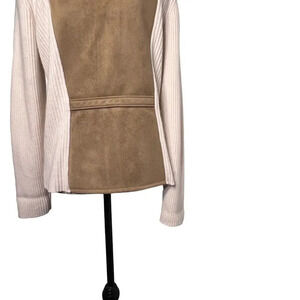 Liz Claiborne Angora Wool Faux Suede Bodice Sweater Jacket Shacket Womens L Tan
