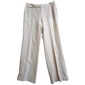 Liz Claiborne Audra Sz 12 Beige 100% Linen Cuffed Trouser Pants Beach Career Classy Country Club Old Money Coastal Grandma NWT