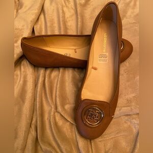 NWOT Liz Claiborne Ballet Womens Camel Selma Brown Flat Slip On Signature Size 8