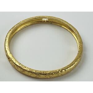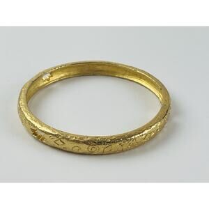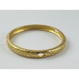 Liz Claiborne Bangle Bracelet Gold Tone Star cut out Etched LCi Moon Spiral Burs