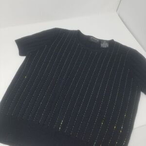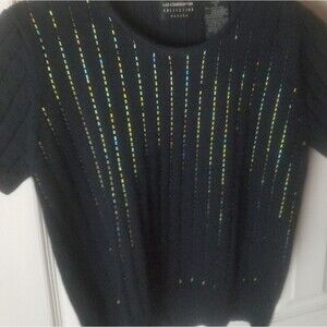 This blouse is perfect for work or a night out. Pair with jeans for a casual work or with slacks or a skirt for work. The beaded front catches the light and reflects beautifully. This short sleeve beaded shirt is preppy and stylish. It is merino wool so it is cozy and really comfortable. Petite Small