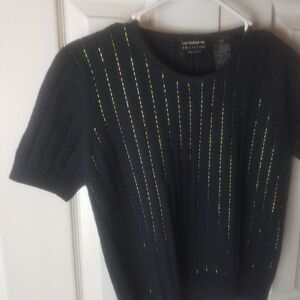 Liz Claiborne Beaded Blouse Navy Petite Small