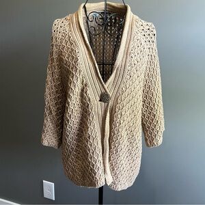 Liz Claiborne Beige Cardigan Lightweight With Gold Button Detail Size XLarge