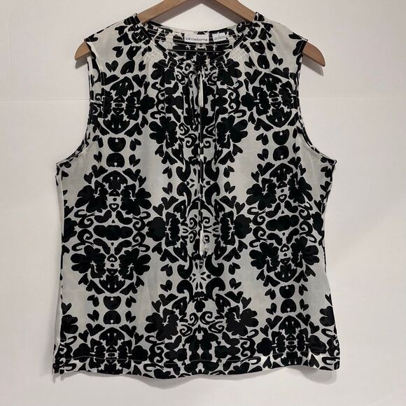 Women’s Liz Claiborne Sleeveless Top Black And White Pattern Tie Neckline