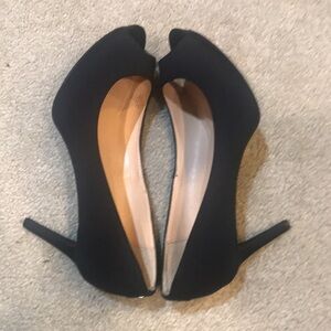 Liz Claiborne Black Fabric Peep Toe 3 Inch Heels-Size 8