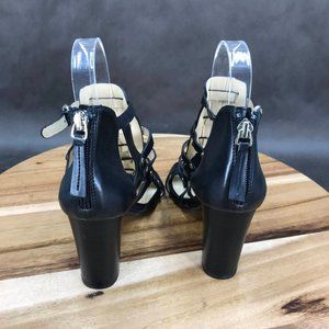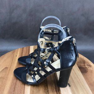 Liz Claiborne Black Faux Leather Cutout Studded Block Heel Booties Womens Size 6