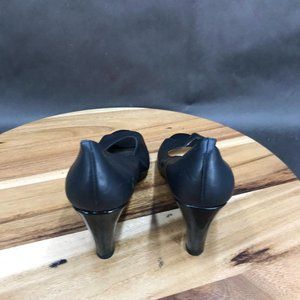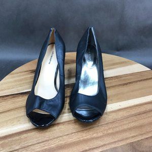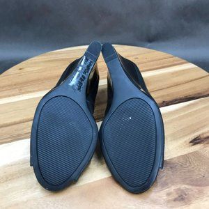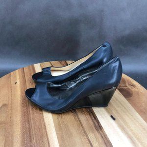 Liz Claiborne Black Faux Leather Peep Toe Wedge Pumps Heels Womens Size 6