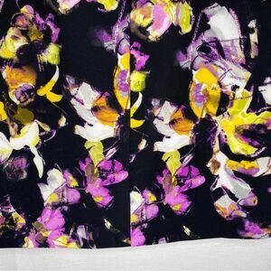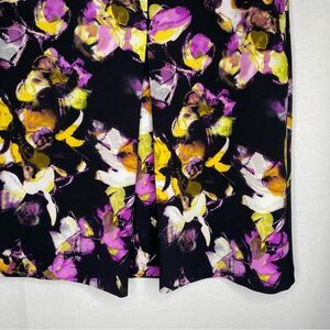 Features: Side hidden zipper with hook eye closure, 2 front pockets, inverted pleat in front of skirt, business casual or casual, all over floral print, lined