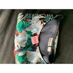 Liz Claiborne Black Floral Short Sleeve High-Low Blouse Womens Size Large