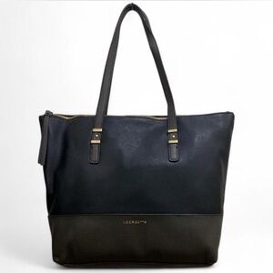 Liz Claiborne Black Gray Tote Purse / Bag w/ Gold Colored Logo Detail Layla Tote