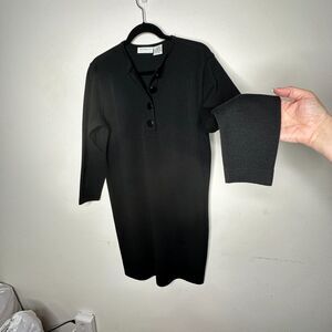 Liz Claiborne jet Black Henley Style Half Button 3/4 Sleeve Wool Dress