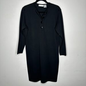 Liz Claiborne Black Henley V-Style Half Button 3/4 Sleeve Wool Dress M