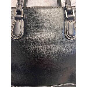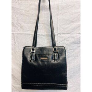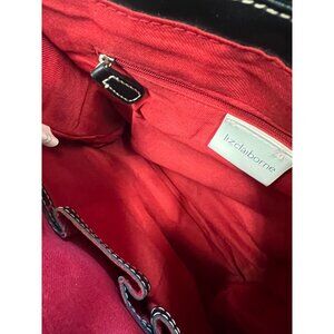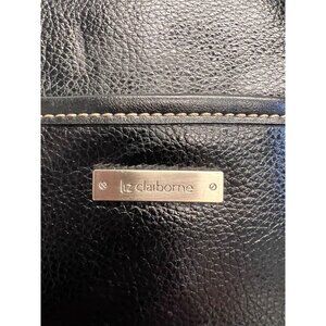 Liz Claiborne Black Leather Shoulder Bag Red Interior Pockets Shoulder Strap 28”