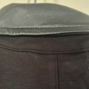 This stylish black leather jacket by Liz Claiborne showcases a chic wrap design with a wide shawl collar. The smooth, slightly shiny material and tie belt closure create a modern and elegant look, ideal for elevating any ensemble.