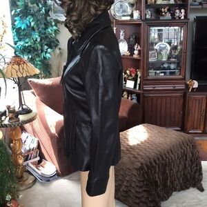 Liz Claiborne Black Leather Zippered Jacket. Women's size Small.