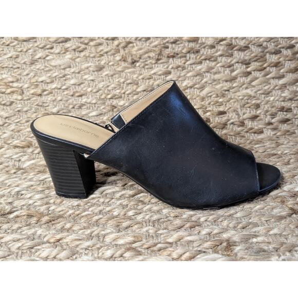 Liz Claiborne Black Open Toe Purse Mules Size 9.5 M Slip On 3" Heels
