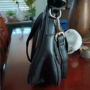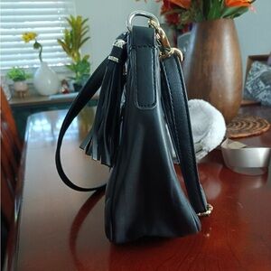 Chic quilted design with a sleek black finish. Perfect for everyday use. In like new condition. A Chanel dupe. Zipper closure with tassel accessory. Measures 12” x 9” x 4.5”.