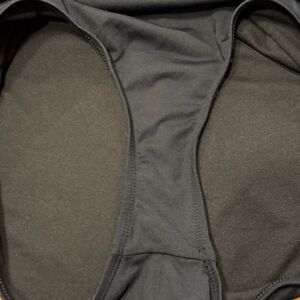 Like new condition nylon and spandex blend black ruched one piece swimsuit from Liz Claiborne. Women’s size US 14. 15” across chest and 28.5” long. Unlined bra area.