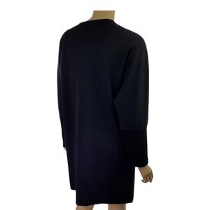 Liz Claiborne Black Shift Dress Sz PM Long Dolman Sleeves Crew Neck Acrylic/Wool