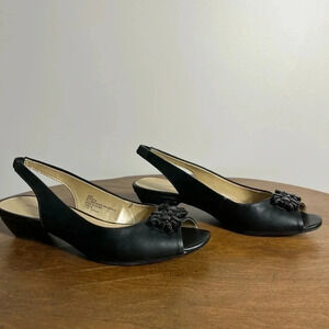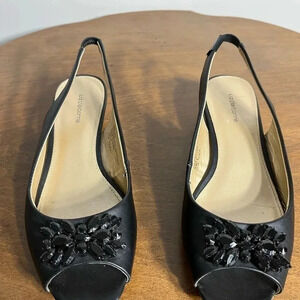Liz Claiborne Black Slingbacks with Gem Embellishments 6.5