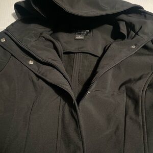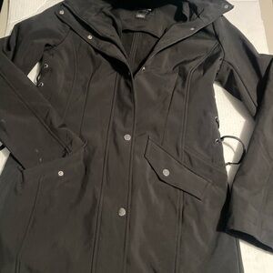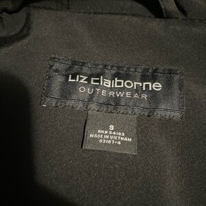 Liz Claiborne Black Trench Coat with Stand-Up Collar and Adjustable Lacing