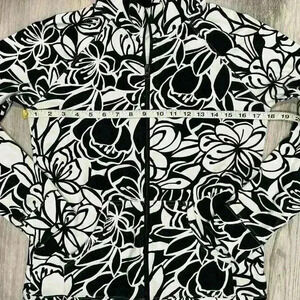 Liz Claiborne Black White Floral Full Zip Up Mock Neck Sweatshirt Jacket Size S