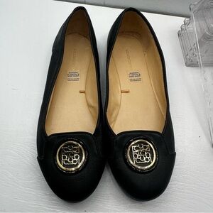 Liz Claiborne Black and Gold Driving Loafer Flats with Medallion 9Wide