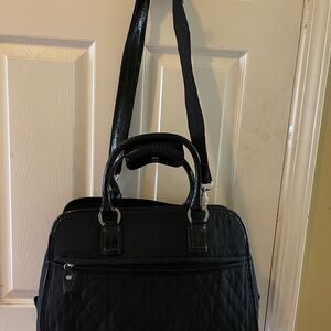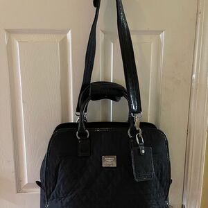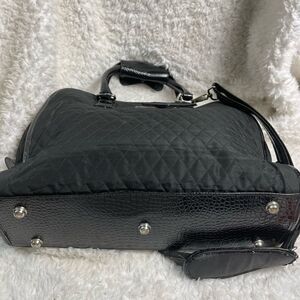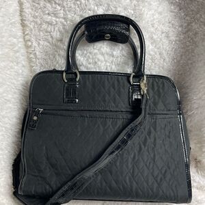 Liz Claiborne Black quilted fabric large laptop work bag silver tone hardwares