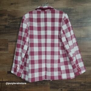 Liz Claiborne Blazer 14 P Tweed Buffalo Plaid Wool Blend Button Accents NWOT