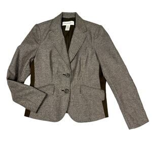 Liz Claiborne brown two button notched blazer jacket with contrast side panels and elbow patches. Women's size Small