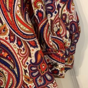 Stylish Liz Claiborne paisley print blouse, featuring vibrant red, purple, and cream colors. Perfect for any occasion. Excellent condition. No rips or stains Armpit to Armpit is 25 inches. Length is approx 28 inches. (See photos) color as seen in photos